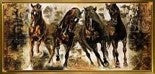 Dieses Druckbild zeigt vier majestätische Pferde, kunstvoll schattiert und von Hand mit goldenen Akzenten verziert. Diese eindrucksvolle Darstellung vereint Anmut und Luxus und wird zweifellos zum Blickfang in jedem Raum.